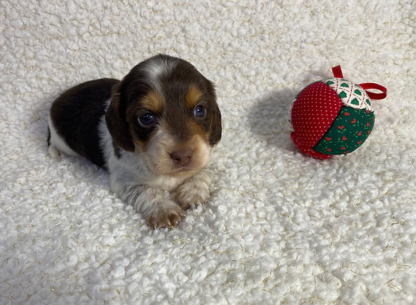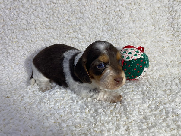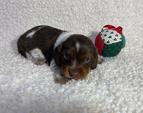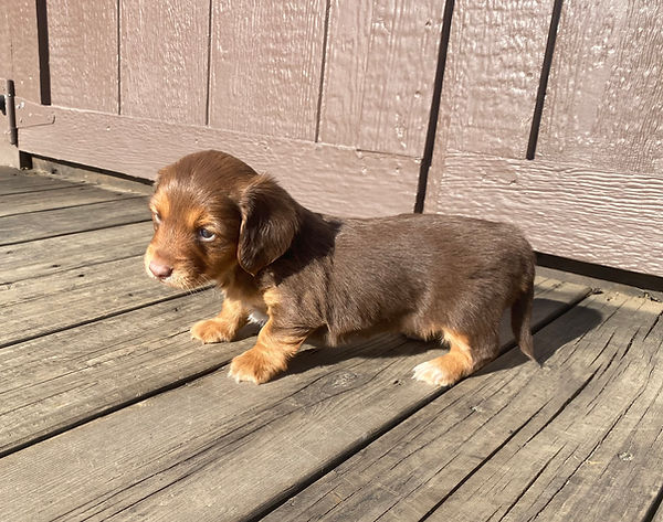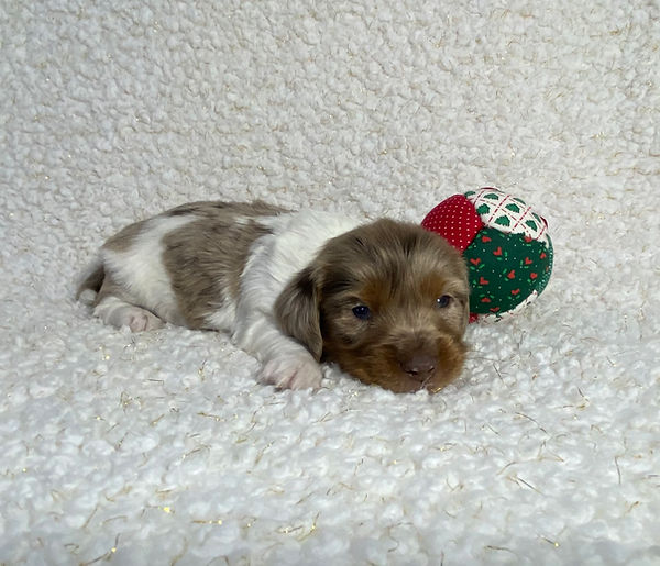 Izzy and Scooby had a litter of miniature dachshund puppies on 11/10/25. They will be ready for their new homes on Sunday, 1/4/26. I expect the puppies to have very sweet, calm, and obedient temperaments like mom and dad. They should be around 11 lbs at maturity.